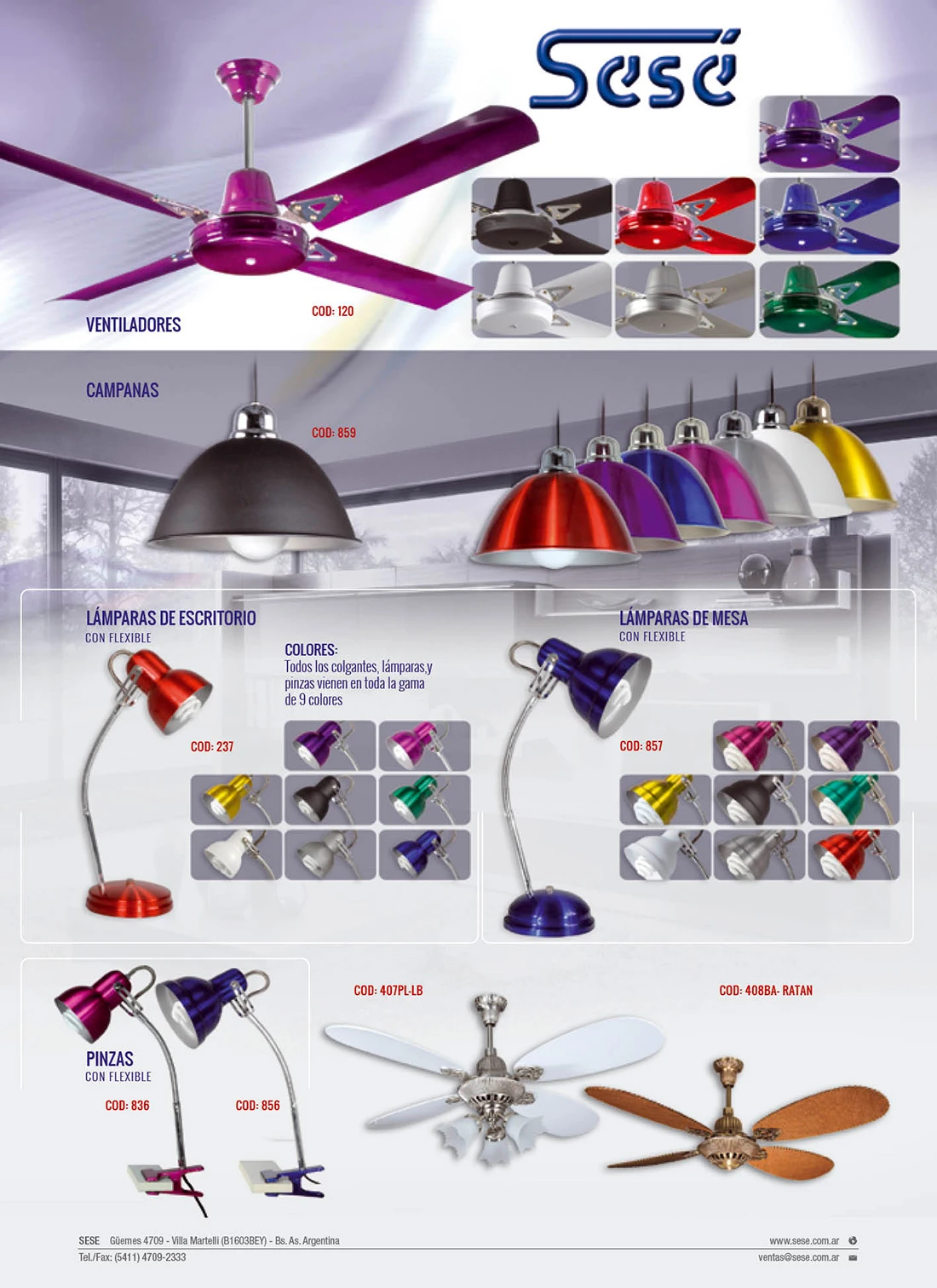 En la actualidad la marca sese, ofrece una importante variedad de articulos de ventilacion e iluminacion, para abastecer al mercado del hogar, la industria y el comercio.